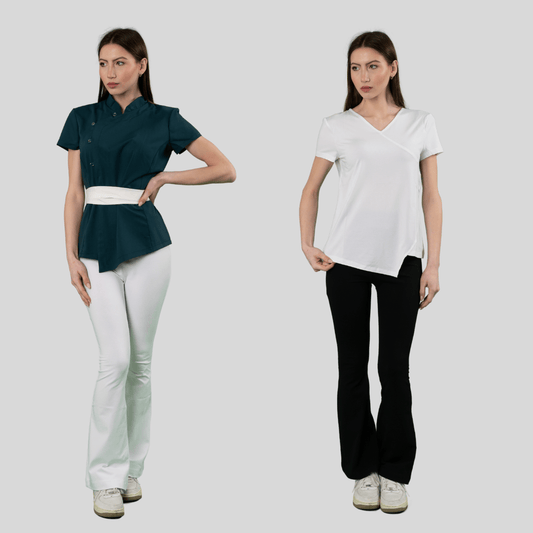 La nostra linea di abbigliamento è studiata per professionisti del beauty, centri estetici, spa e saloni di benessere, con capi realizzati in 97% cotone e 3% elastam, perfetti per garantire: