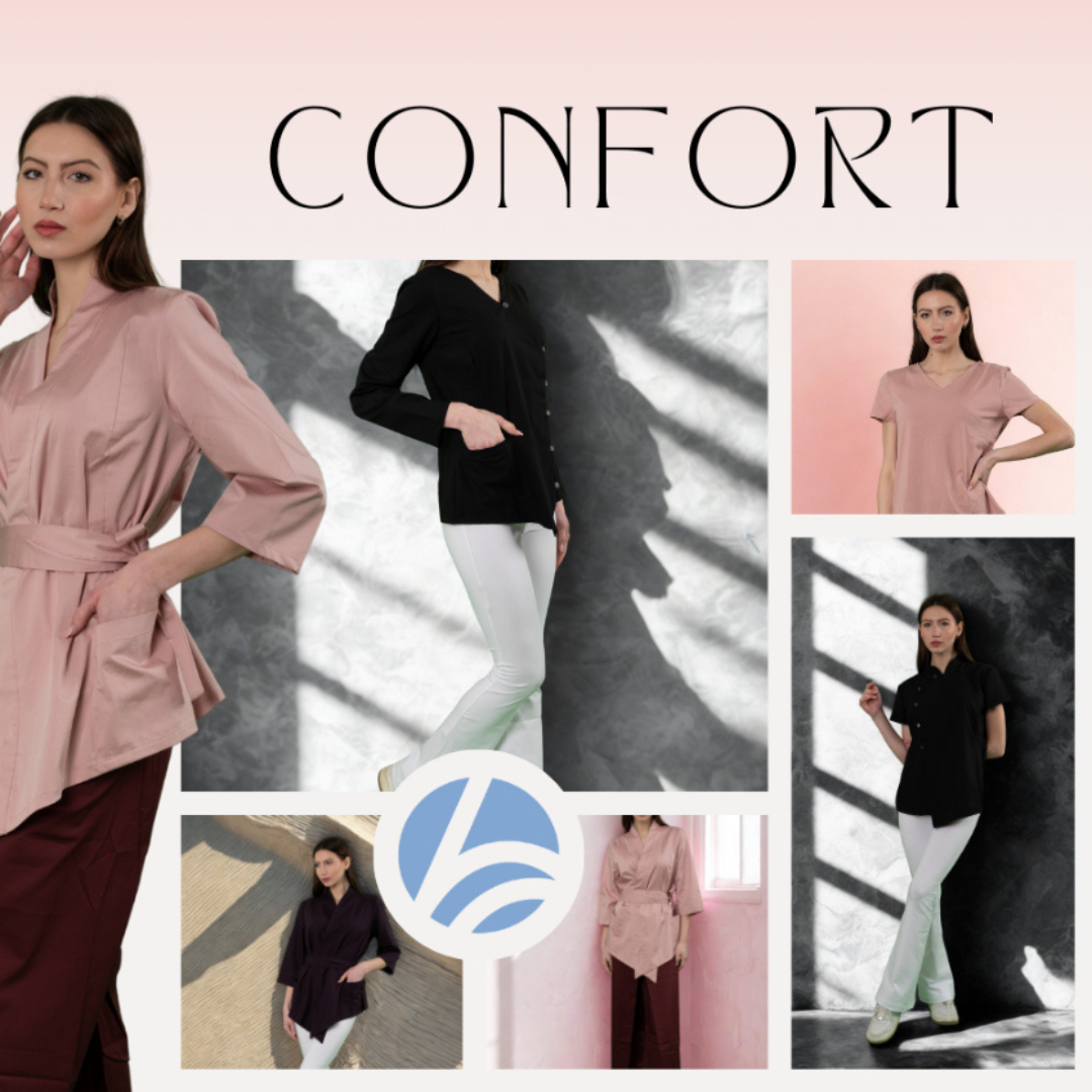 La nostra linea di abbigliamento è studiata per professionisti del beauty, centri estetici, spa e saloni di benessere, con capi realizzati in 97% cotone e 3% elastam, perfetti per garantire: